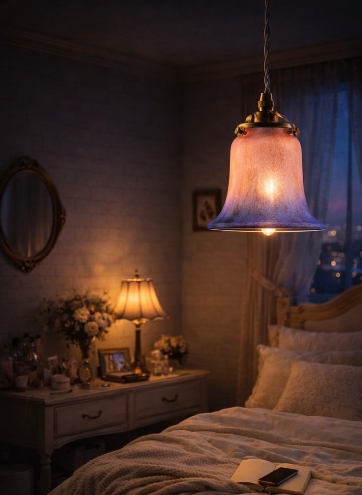 空間をピンクに染める光|虹彩ガラス アール・ヌーヴォースタイル ランプシェード「インペリアルレッド」