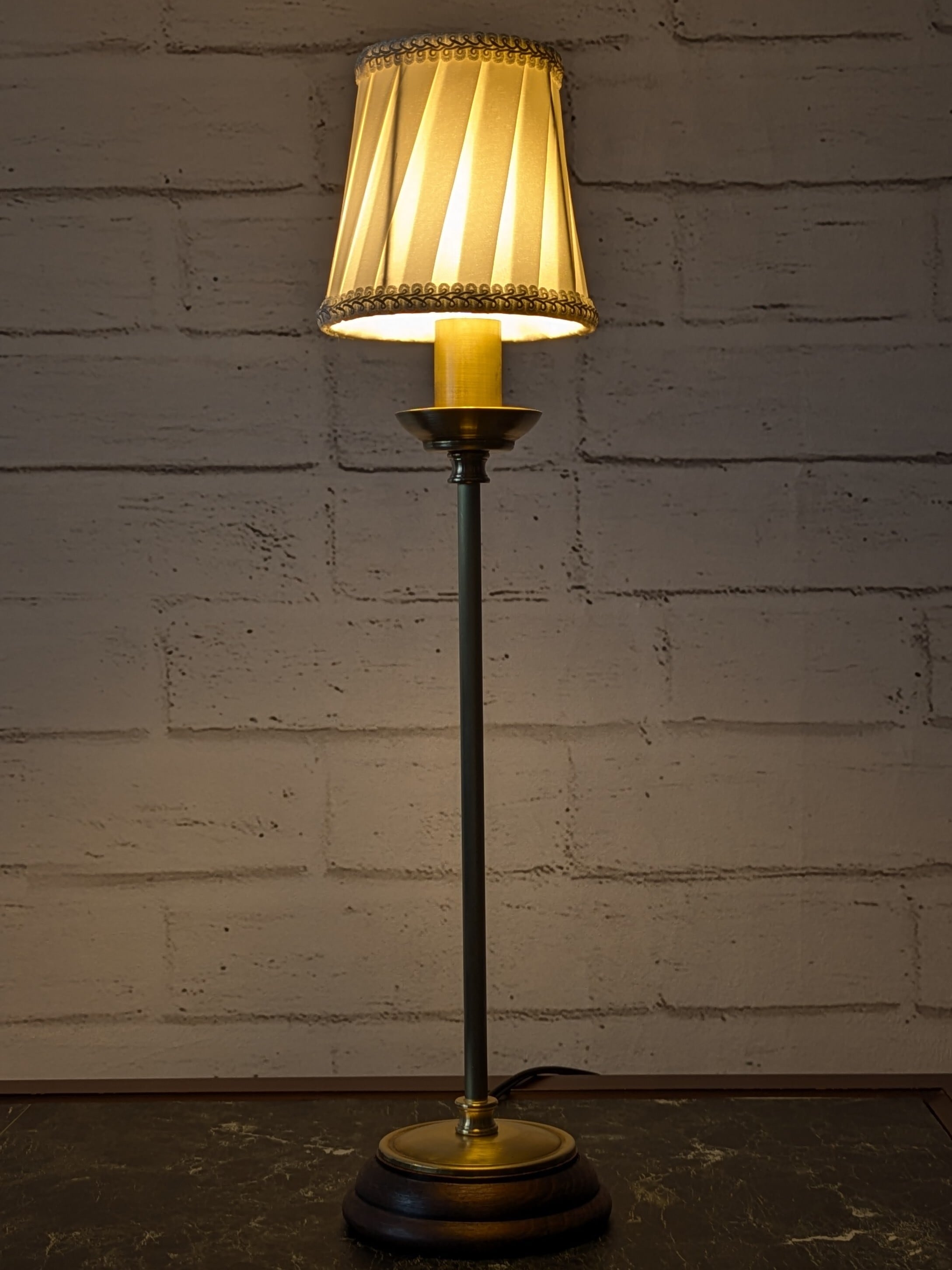 素材には真鍮を使用し、台座には温もりを感じる木材を採用しています。この組み合わせが、独特の存在感を生み出します。