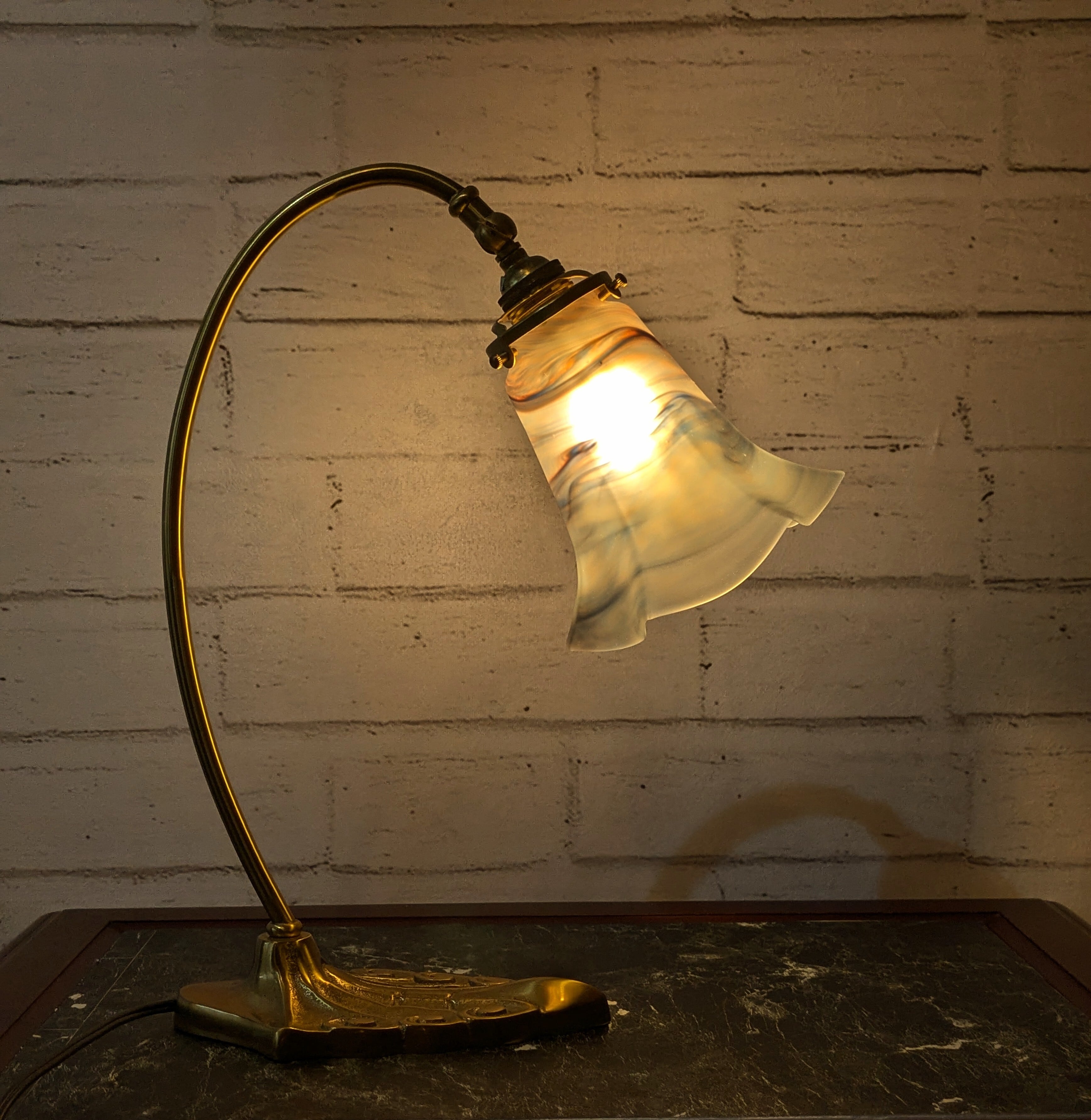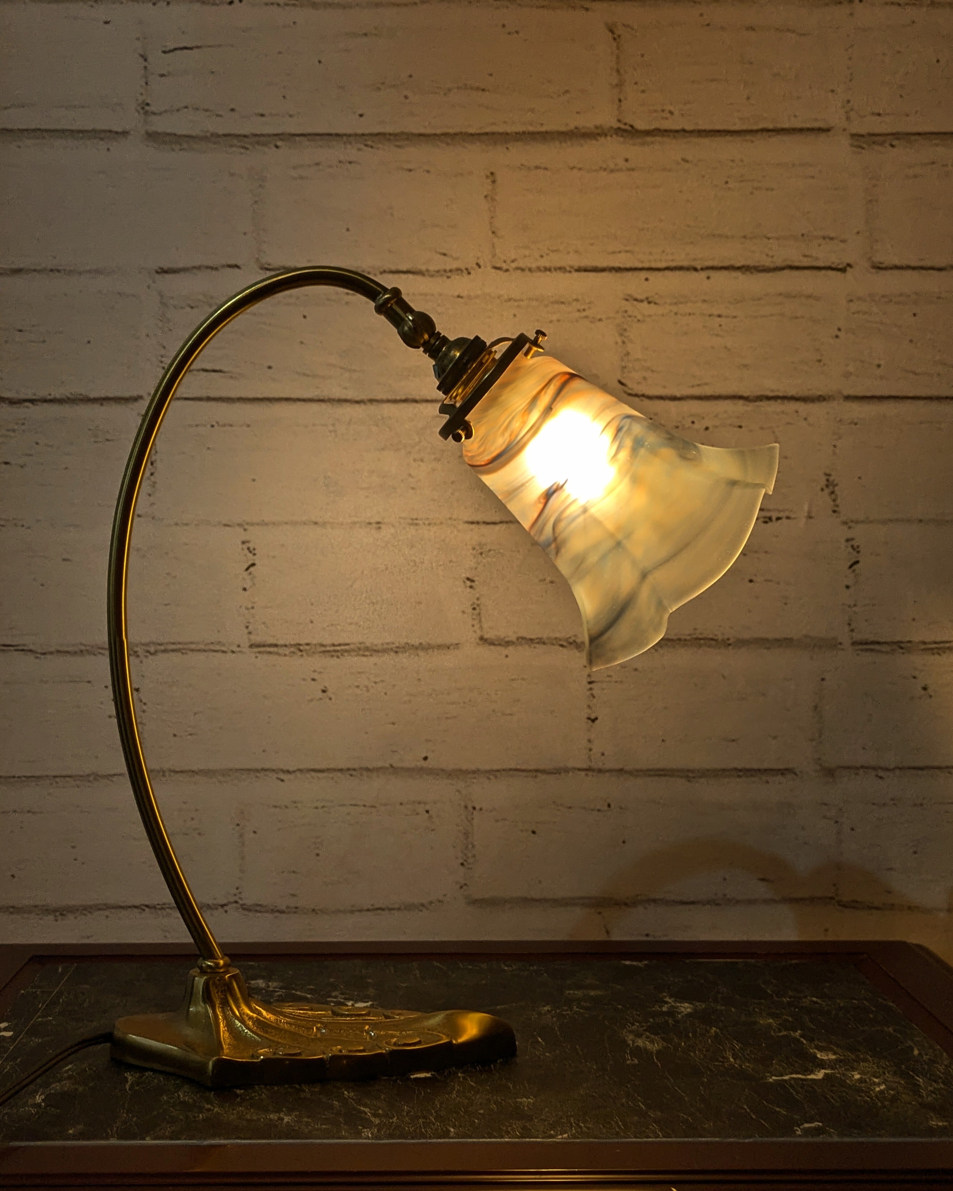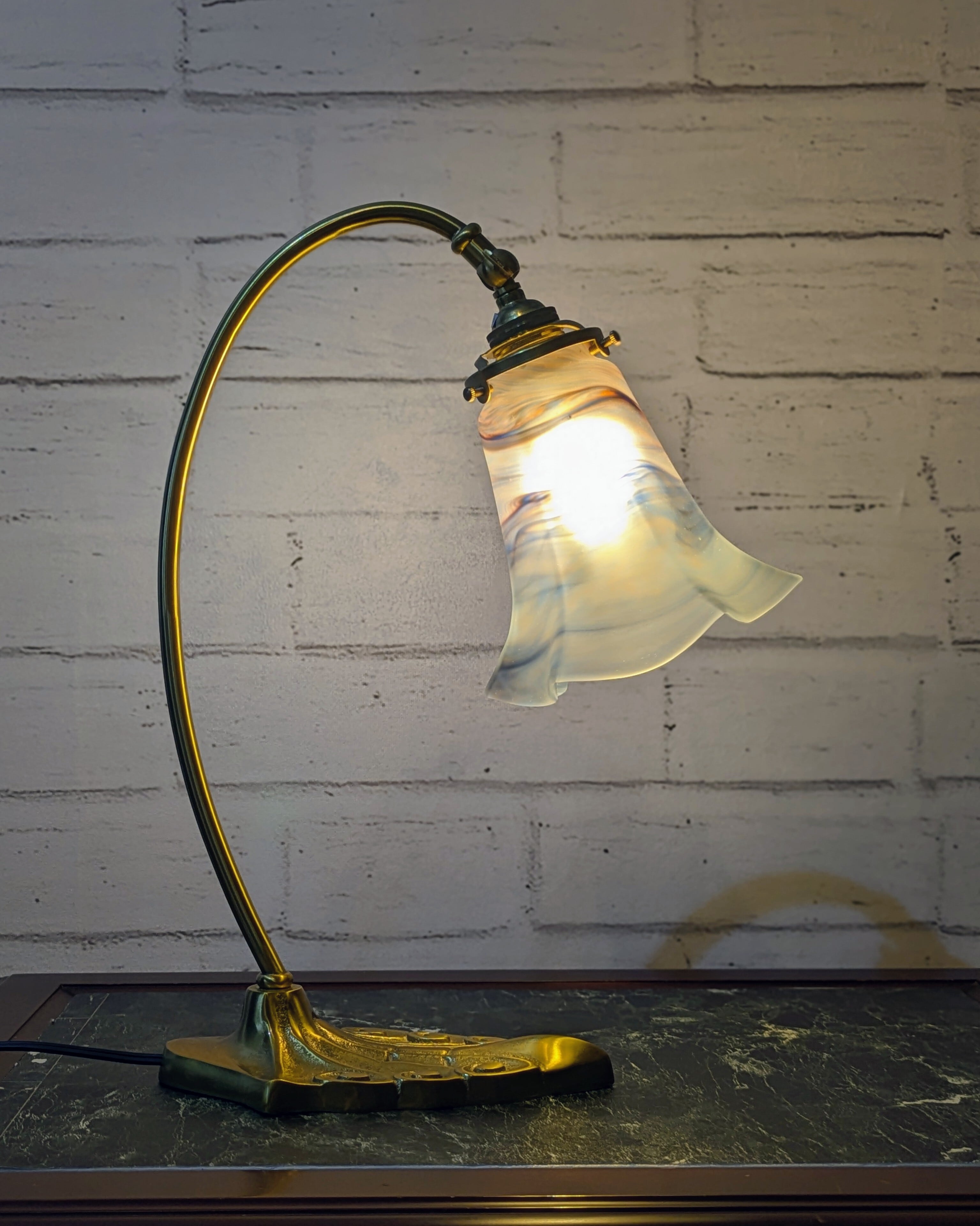 素材には真鍮を採用し、アンティーク調の風合いを持たせています。光を受けることで独特の存在感が生まれ、お部屋を優雅に演出します。