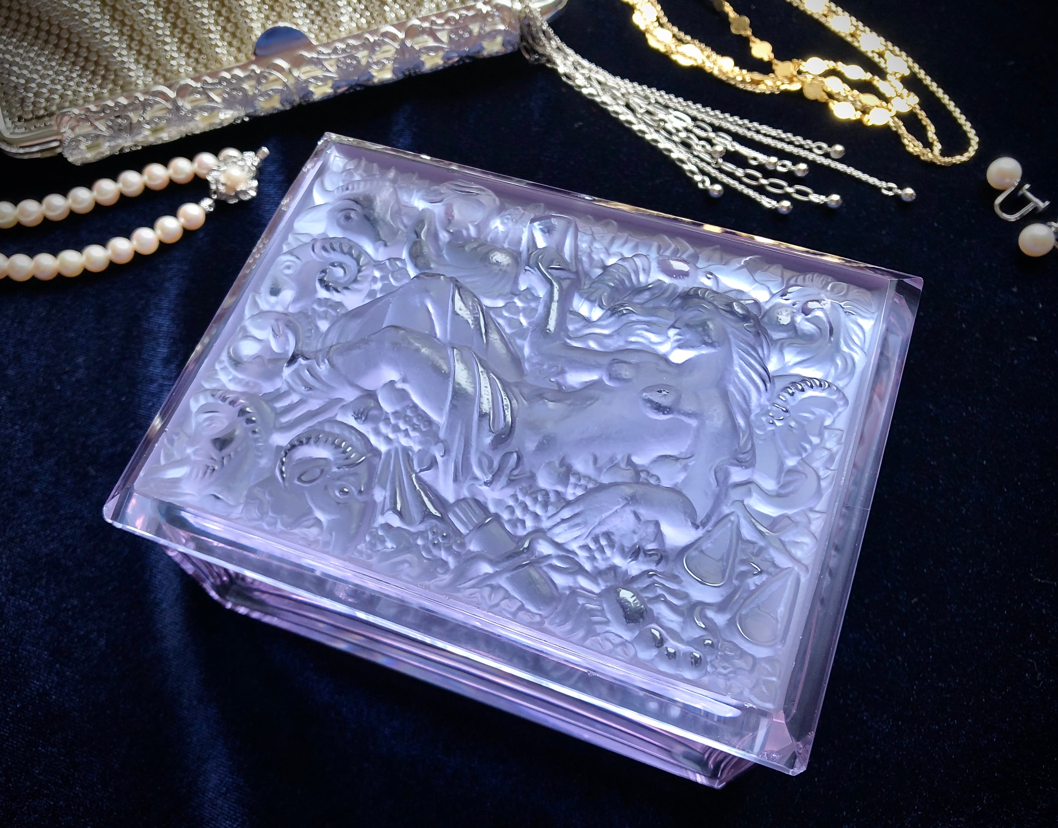 1930年代のアール・デコ期にこのスタイルが確立された時を同じくしてネオジウムガラス(アレキサンドライトガラス)が本格的に工芸品に使われ始めたのもこの時期と重なります。