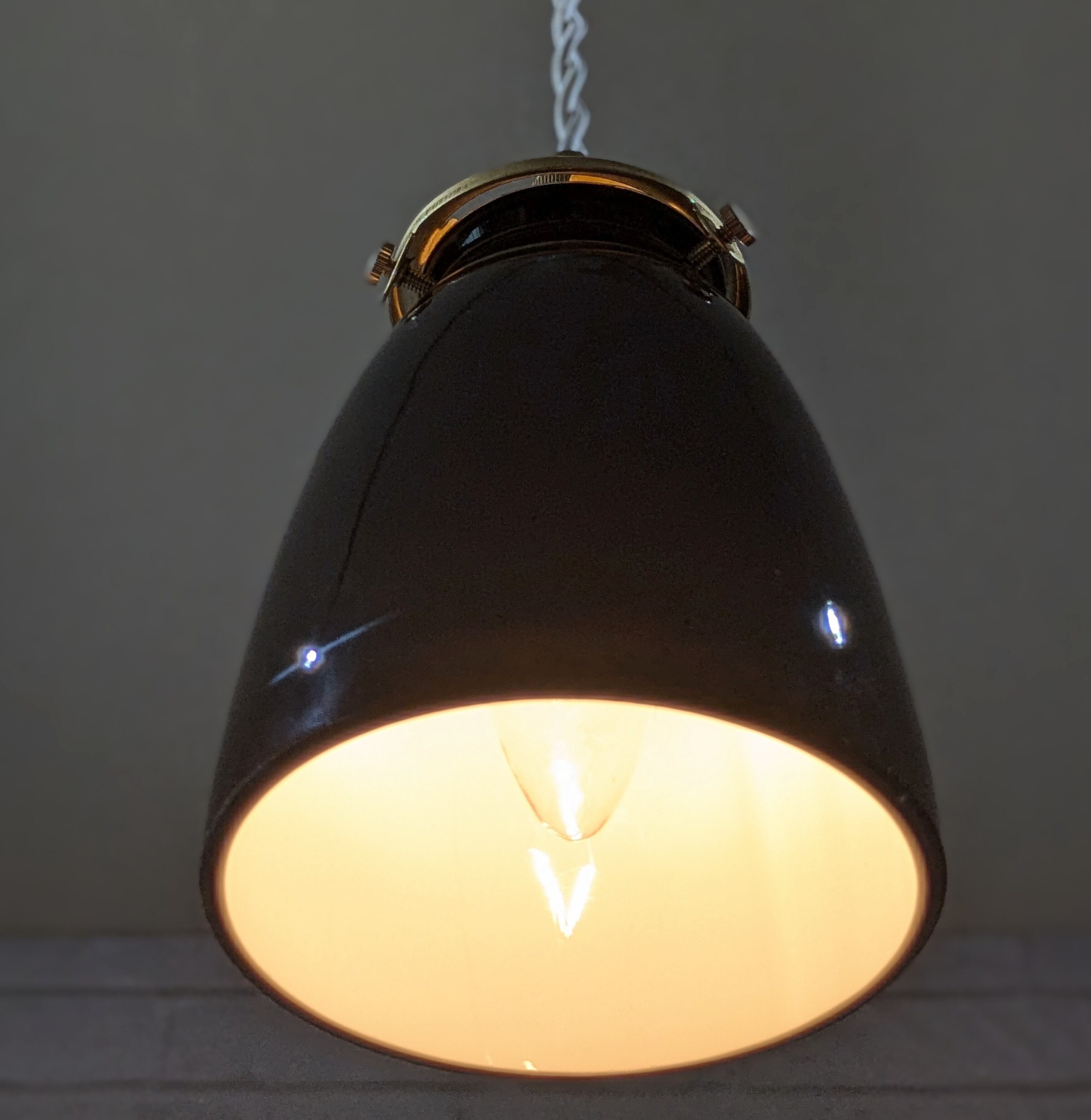 内側は白色ガラスで光を反射し下方を照らします。